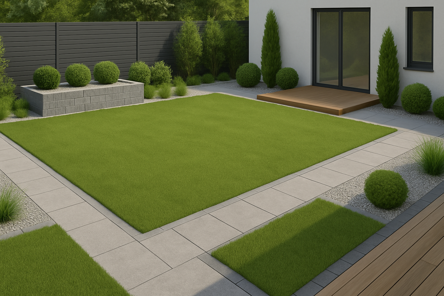 koncepcję układu ogrodu w stylu nowoczesnym,